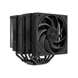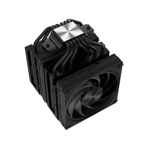 This premium cooler sports a sleek all-black design with a brushed metal top cover, paired with dual 120mm guide ring fans that deliver powerful yet whisper-quiet cooling.